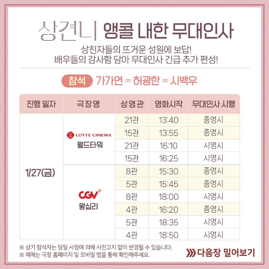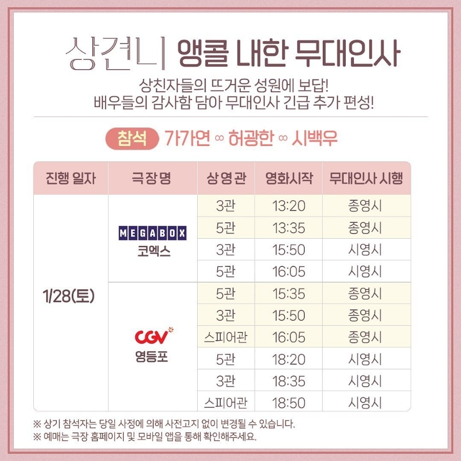앵콜 내한 무대인사 공지였다!!!!!!